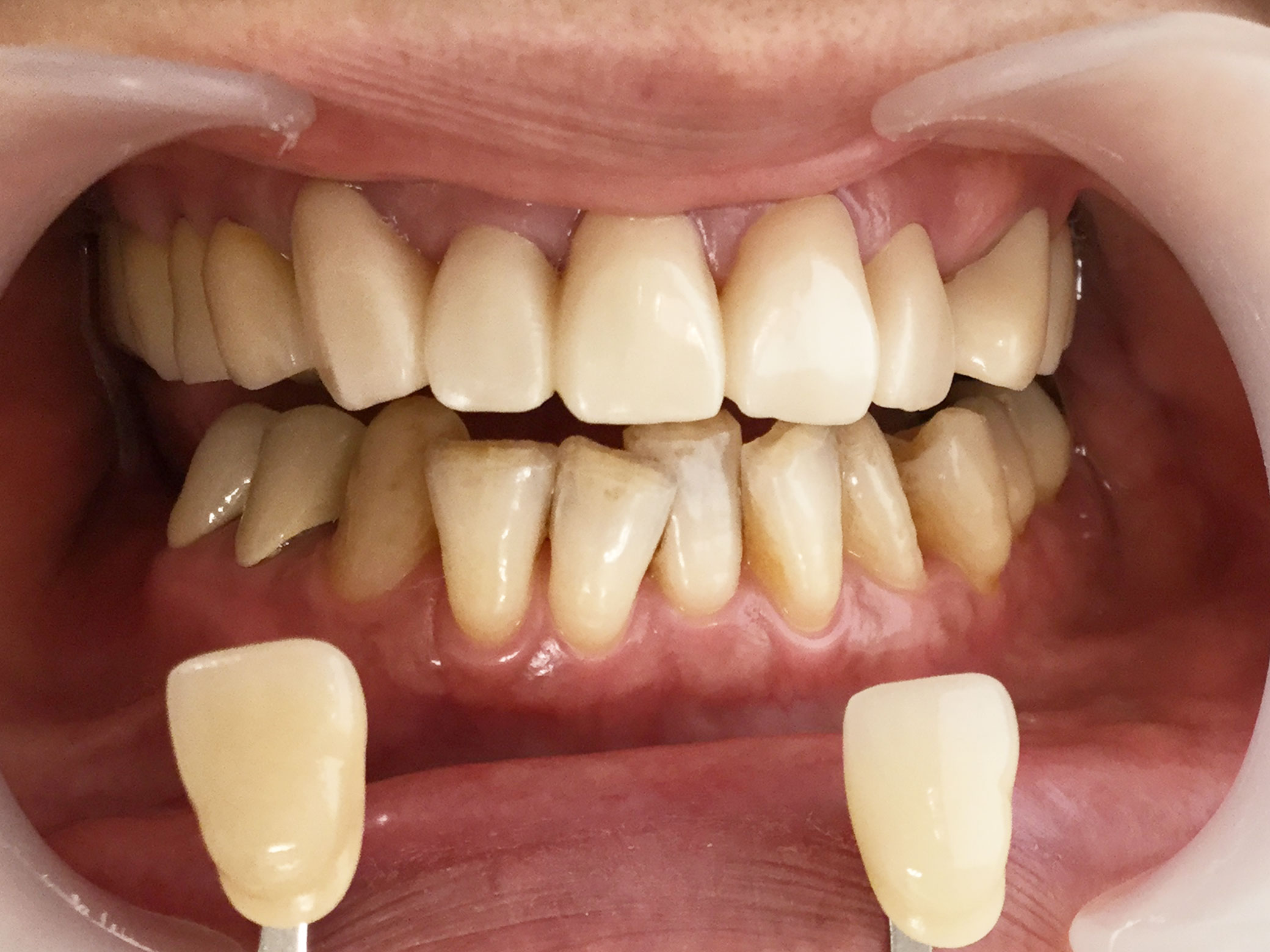 1)詰め物や被せ物は、ホワイトニングをしても白くなりません。