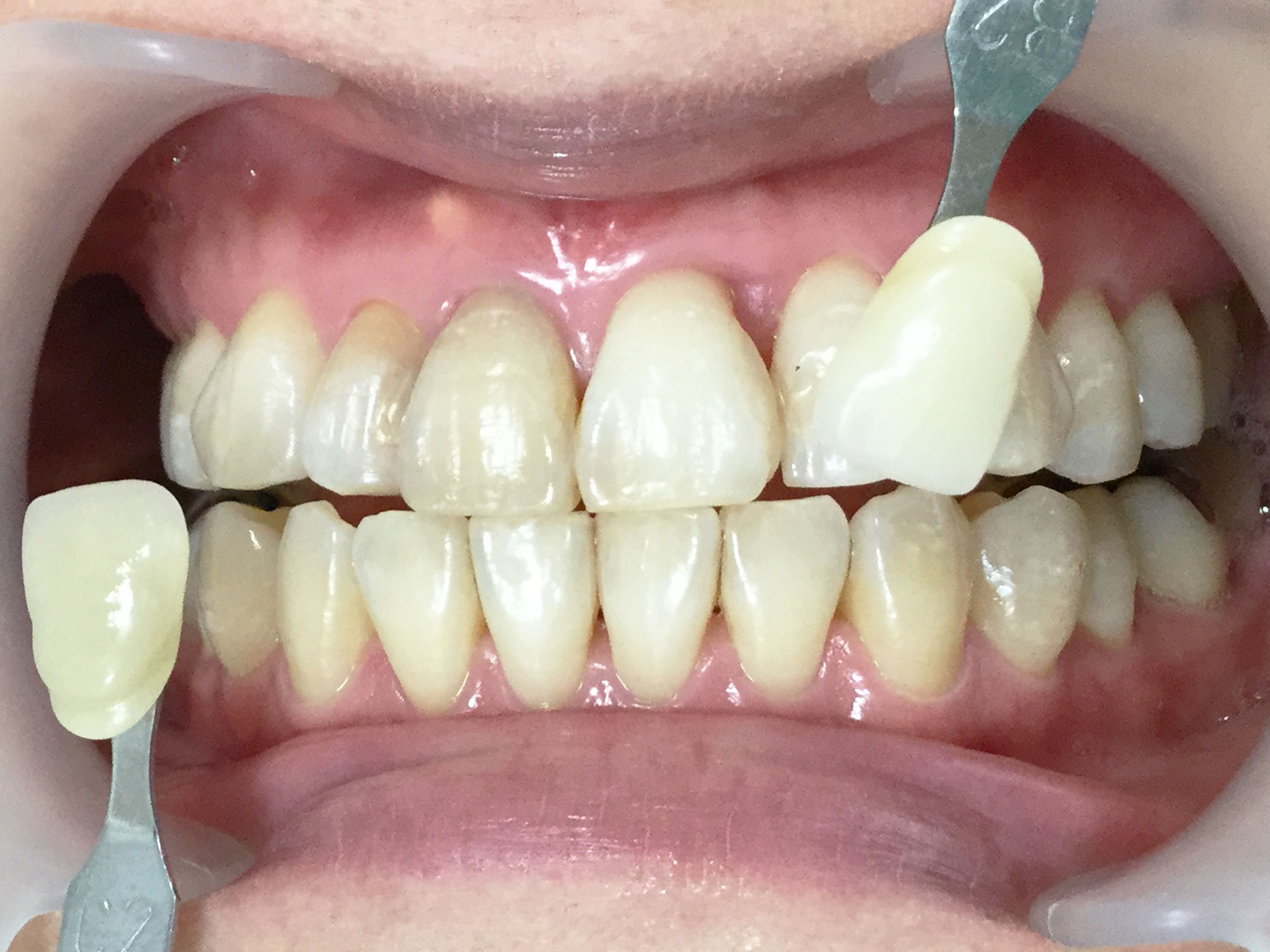 グレーがかった色味で、最もホワイトニングの効果を実感できにくいです。